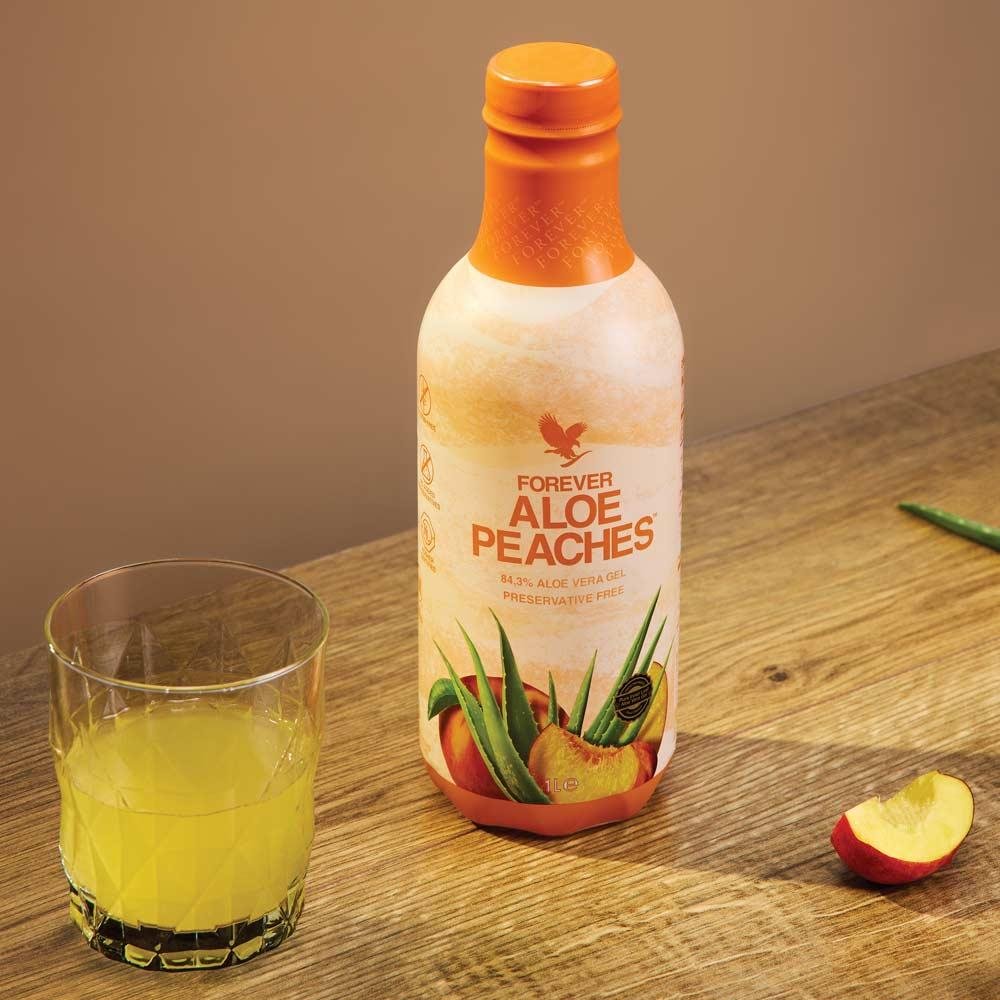 Cu 84,3% gel din interiorul frunzei, Forever Aloe Peaches combina piureul de piersici cu gelul pur de Aloe vera. Bautura rezultata este delicioasa si sanatoasa, adevarata sursa de vitamine si antioxidanti, fara conservanti, care iti da senzatia, cand o savurezi, ca iti torni o raza de soare in pahar.